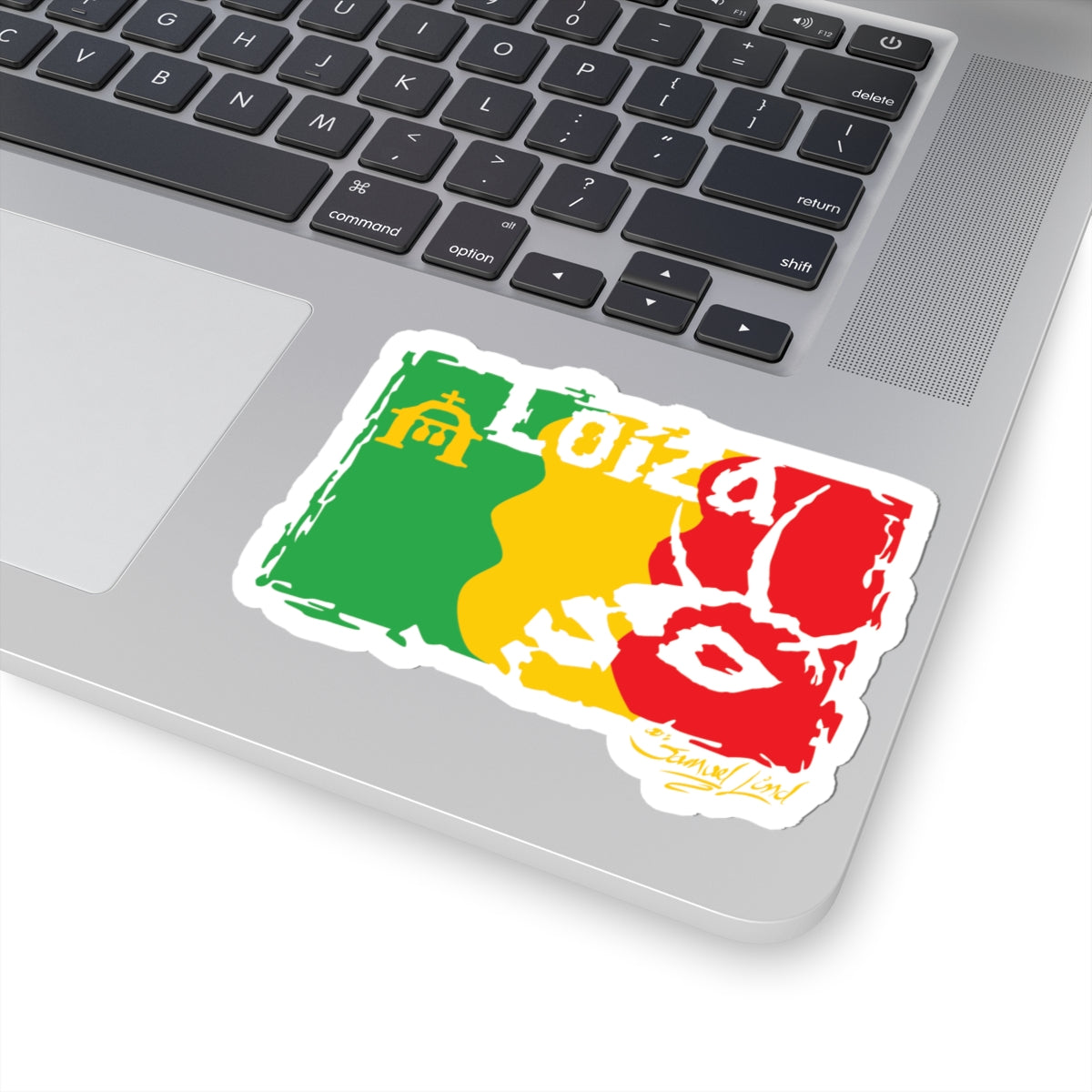 Celebrate the spirit of Loíza with this bold artistic sticker inspired by culture, color, and identity. Designed with a distressed, hand-crafted look, this piece features the iconic green, yellow, and red palette with expressive graphic elements that capture the energy and heritage of Puerto Rico. Perfect for laptops, notebooks, water bottles, cases, or any surface that needs a touch of art and culture.