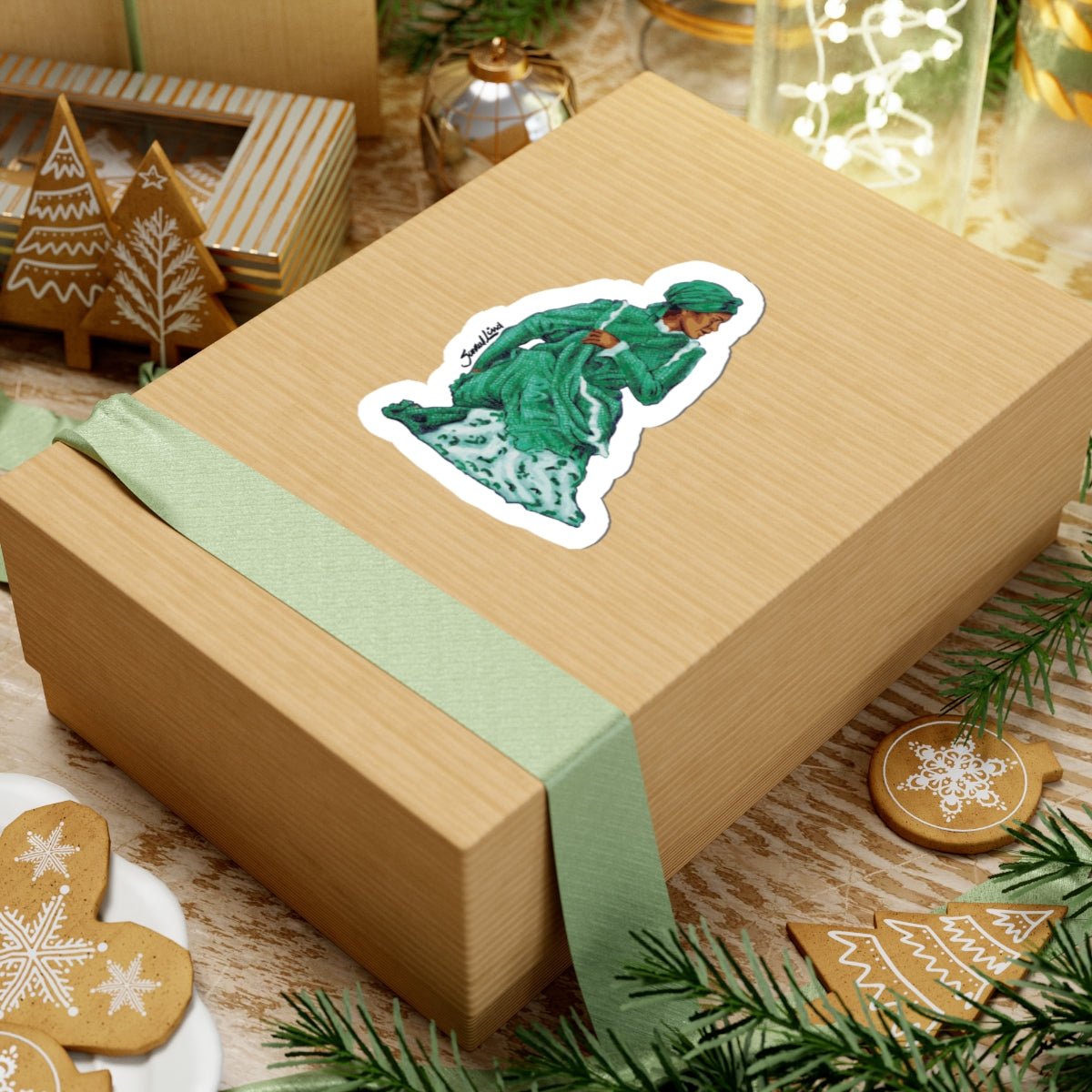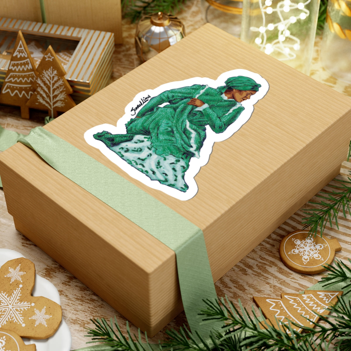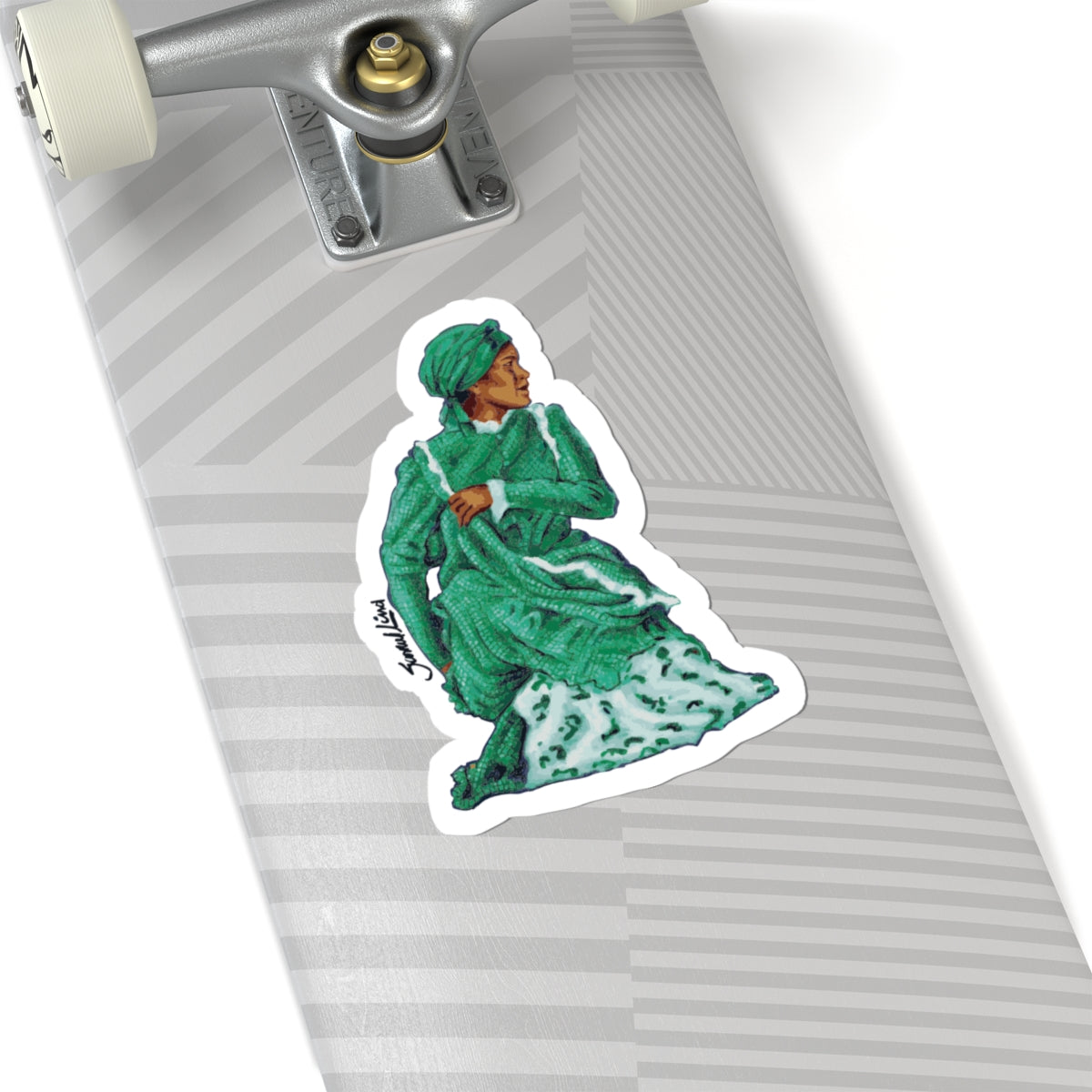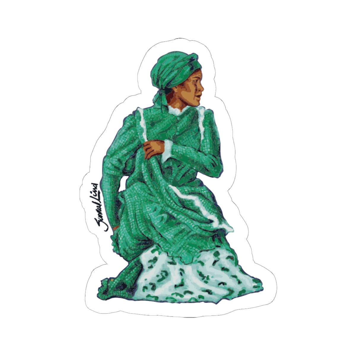A rich, painterly kiss-cut sticker capturing a figure draped in layered green robes and a turban — a tiny portrait that carries a sense of movement and quiet dignity. The glossy finish makes the colors pop and keeps the surface scratch-resistant, while the durable vinyl and strong permanent adhesive cling cleanly to laptops, journals, and other flat surfaces. Choose white or transparent backing and one of four sizes to match your placement. This sticker adds a thoughtful, artistic accent to daily gear — a little moment of color and character that travels with you.